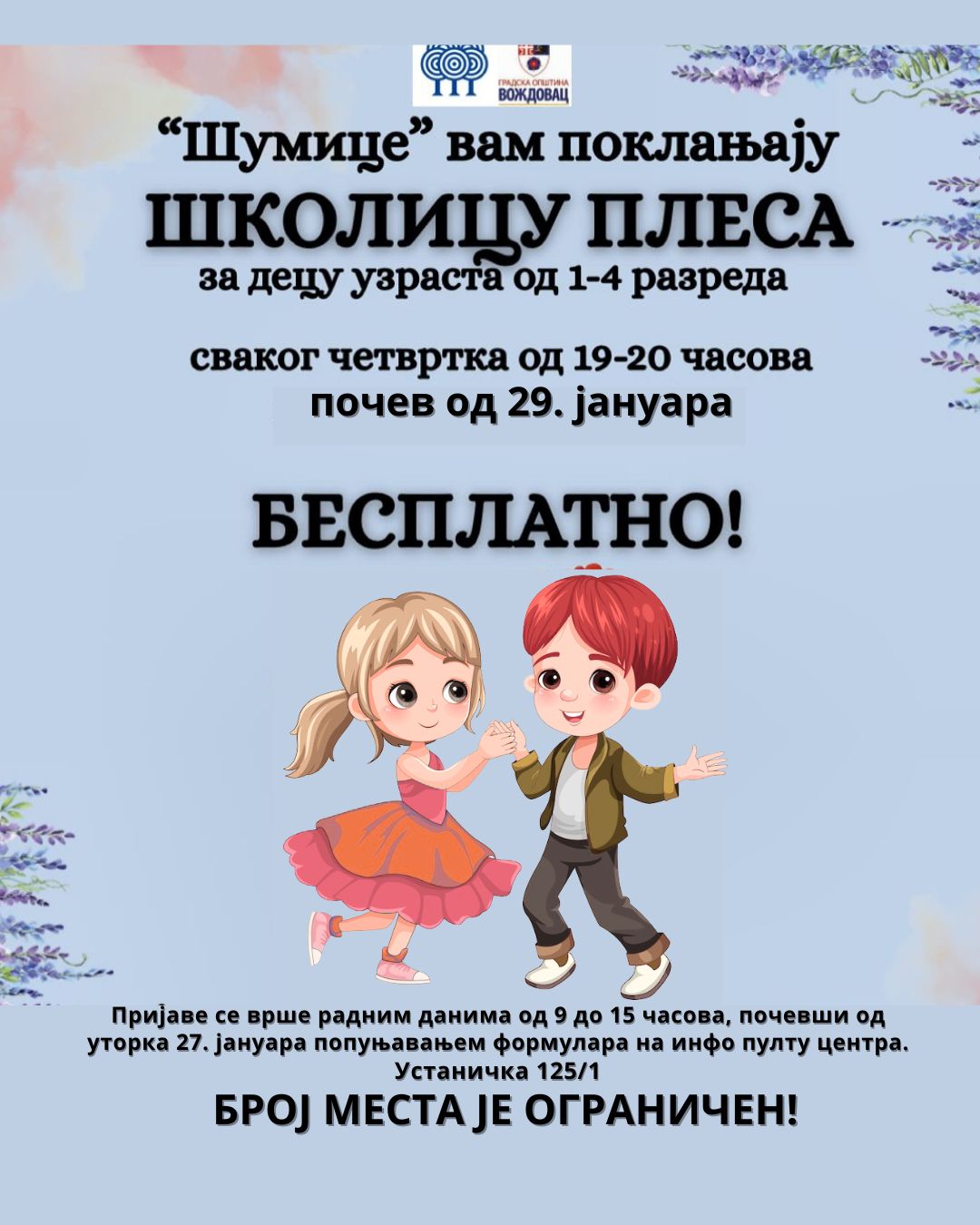 УВЦ „Шумице“ поклањају још један програм за најмлађе, школицу плеса за децу узраста од првог до четвртог разреда, који креће са реализацијом од 29. јануара.